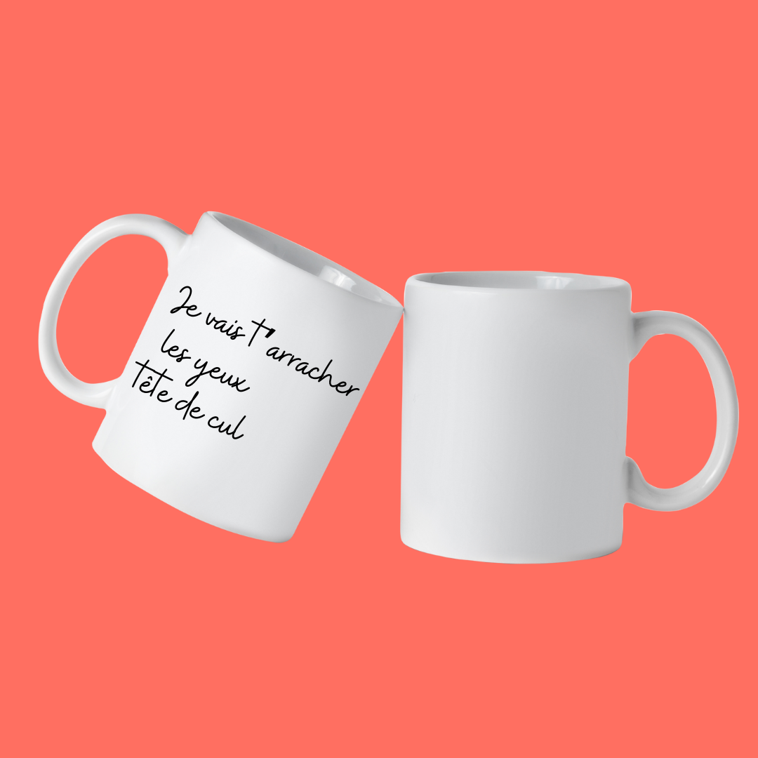 Mug Je vais t’arracher les yeux tête de cul coloré