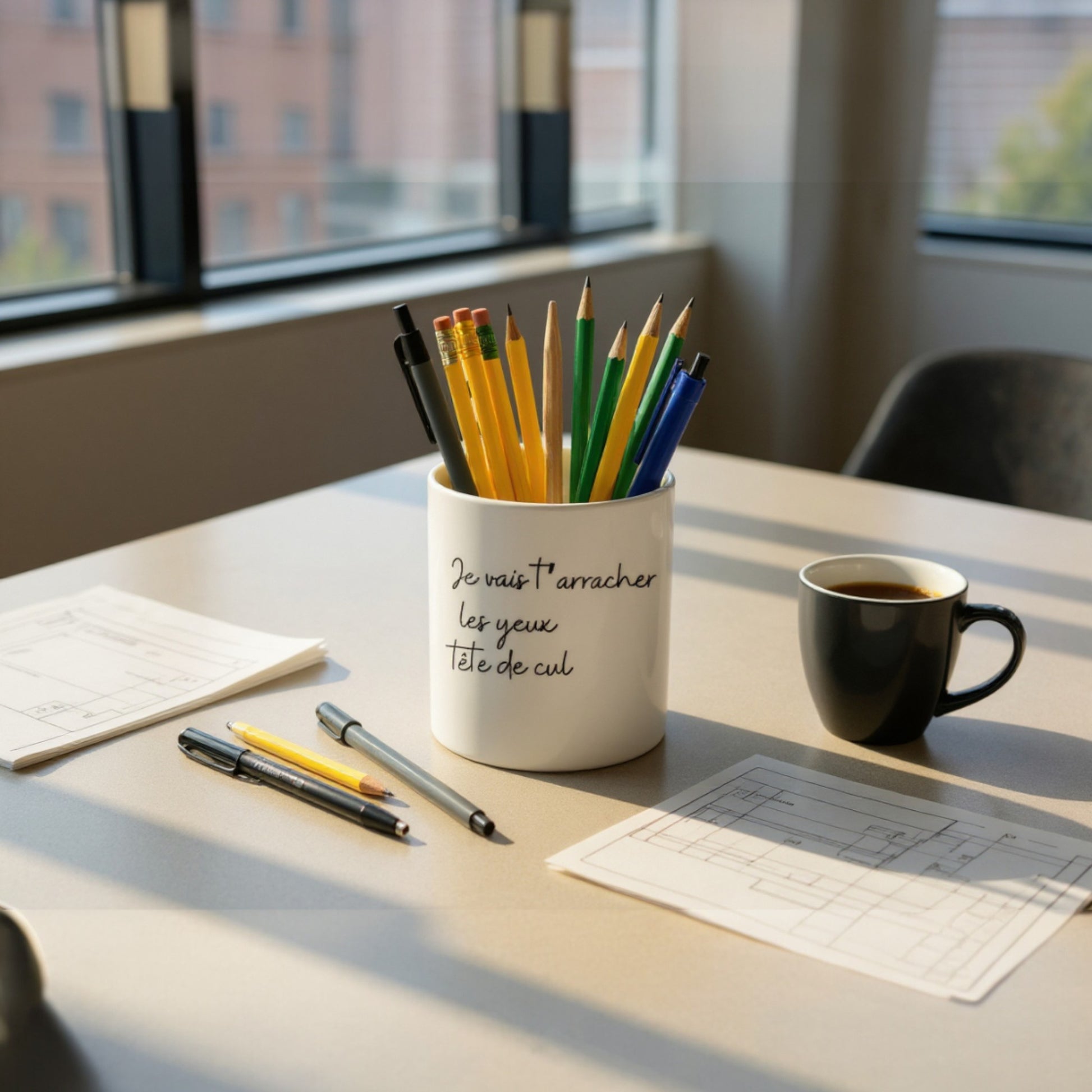 • Originalité garantie : Cette phrase insolite fait de ce pot à crayons un accessoire de bureau inoubliable et un cadeau qui ne passera pas inaperçu.